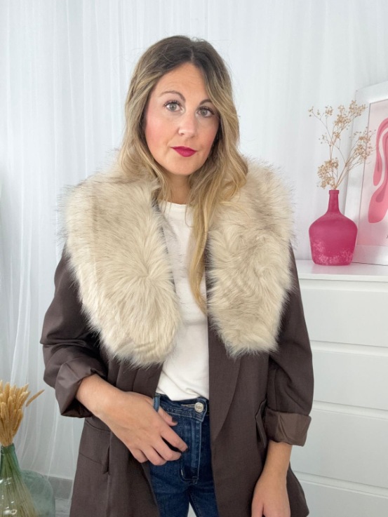 Cuello de pelo sintético muy suave, dale ese toque de glamour a tus looks. Lleva pinza para enganchar.
