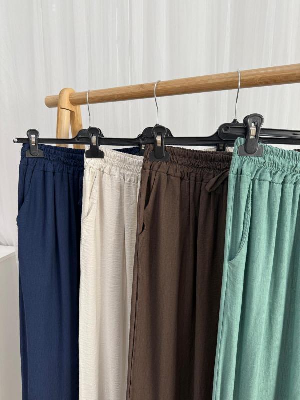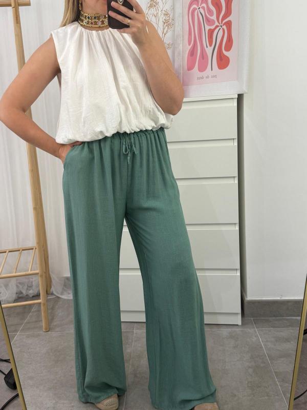 Pantalón de tejido de viscosa tipo lino suelto y fluido, uno de nuestros favoritos de todas las temporadas.