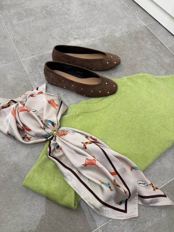Pañuelo cuadro de tejido satinado con estampado de perritos, ideal para todos tus looks y peinados.